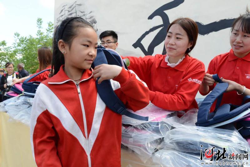“和基金”志愿者為每一位隆基泰和白府小學(xué)的孩子送上精美的書包。