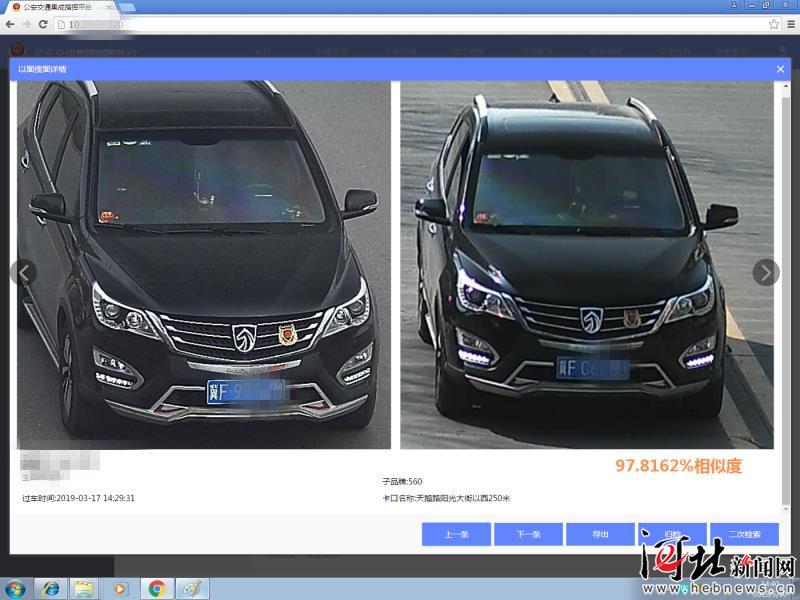 5月29日下午,保定市公安局交警支隊(duì)情報(bào)中心民警正在利用大數(shù)據(jù)分析研判手段處理機(jī)動(dòng)車嚴(yán)重涉牌違法行為。這時(shí),系統(tǒng)提示號(hào)牌為冀F9***M的機(jī)動(dòng)車可能存在違法行為。民警立即將該車信息與數(shù)據(jù)庫(kù)中車輛信息進(jìn)行比對(duì),發(fā)現(xiàn)該車與冀FC***0的機(jī)動(dòng)車相似度為97.8162%,經(jīng)過民警的進(jìn)一步分析,確定上述兩車實(shí)為同一輛車,該車涉嫌使用偽造的機(jī)動(dòng)車號(hào)牌。隨即,民警對(duì)該車開出罰單,罰單在系統(tǒng)中自動(dòng)生效。