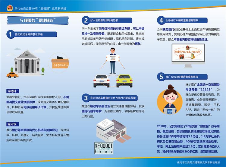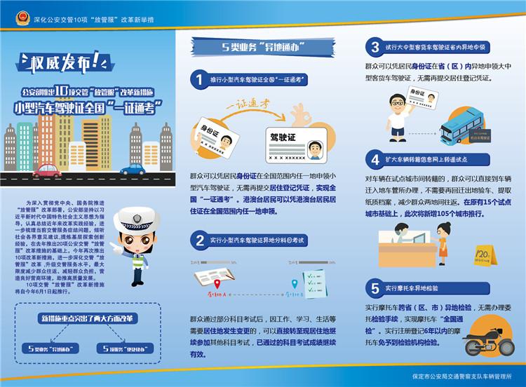 河北新聞網(wǎng)訊(馬晨輝)6月1日,保定市公安局交警支隊(duì)發(fā)布消息稱, 10項(xiàng)公安交管“放管服”改革新措施當(dāng)天全面啟動(dòng),為廣大民眾帶來(lái)5類(lèi)業(yè)務(wù)“異地通辦”、5項(xiàng)服務(wù)“便捷快辦”的便利。