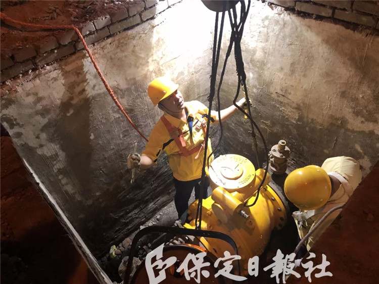 并不寬敞的藍(lán)色圍擋里,記者好容易見到崔健和工友站在沒頂?shù)木赘鼡Q閥門。他邊緊固連接邊介紹著:“這個(gè)源頭閥門都20多年了,年久失修漏點(diǎn)多,而且螺絲銹住沒法拆卸,臨時(shí)用采用氣割,凌晨?jī)牲c(diǎn)才拆下來,現(xiàn)在換上了新閥門!睘樵缛胀瓿扇?xì)忤T鐵管改造工程,不影響清早居民用氣,他帶領(lǐng)施工隊(duì)分段式夜間施工,平均每年夜間施工100多天,每個(gè)夜晚連續(xù)奮戰(zhàn)6個(gè)多小時(shí)。