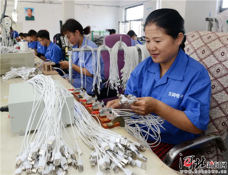 “計件發(fā)工資,能多干就多干點!8月8日,還不到8時,望都縣高嶺鄉(xiāng)天寺臺村44歲的村民郄會強,便來到縣方潤電子設(shè)備有限公司的扶貧車間,忙著進行數(shù)據(jù)線注塑。