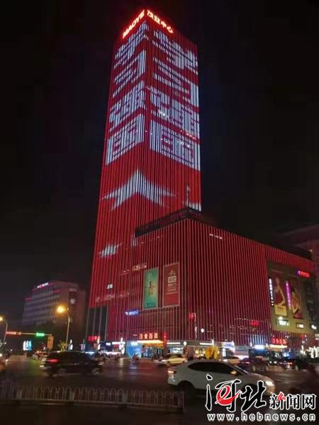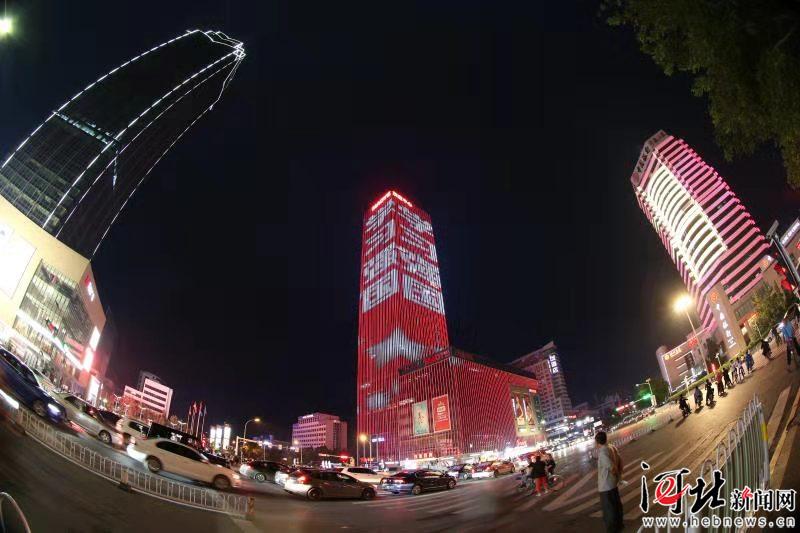 夜幕降臨,“學習強國”霓虹燈點亮保定地標建筑茂業(yè)百貨大樓。
