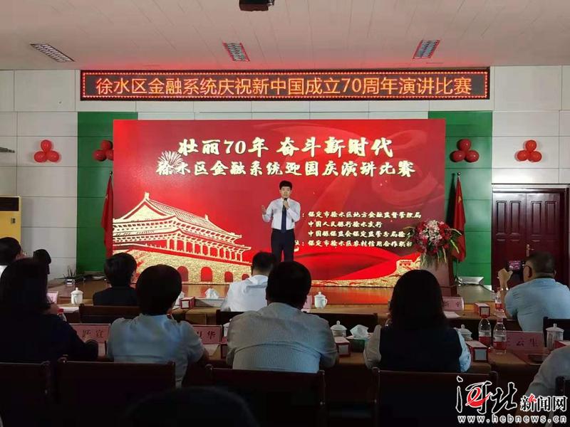 河北新聞網(wǎng)訊(通訊員王新平、龐嘉偉)9月27日,保定徐水區(qū)金融系統(tǒng)舉辦慶祝新中國成立70周年演講比賽。此次比賽由保定市徐水區(qū)地方金融監(jiān)督管理局、中國人民銀行徐水支行、中國銀保監(jiān)會保定監(jiān)管分局徐水監(jiān)管組主辦,保定市徐水區(qū)農(nóng)村信用合作聯(lián)社承辦。