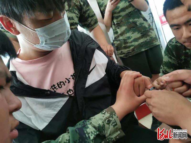 5月20日上午,劉先生和他的女友甜蜜告白并互贈(zèng)了戒指。下午,劉先生午休醒來后發(fā)現(xiàn)自己的手指頭被新戒指卡住了。他在網(wǎng)上搜刮了許多的技巧,都無法將戒指取下,時(shí)間一長,戴戒指的手指開始出現(xiàn)腫脹,疼痛難忍。輾轉(zhuǎn)多處,他匆匆趕到博野縣消防大隊(duì)博成街消防救援站進(jìn)行求助。