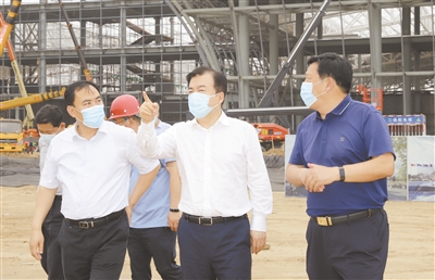 6月23日,市委書記黨曉龍到安國(guó)市調(diào)研檢查。這是黨曉龍?jiān)诎矅?guó)市國(guó)際會(huì)展中心項(xiàng)目現(xiàn)場(chǎng)檢查工程建設(shè)進(jìn)展。 本報(bào)記者 曹云鵬 攝