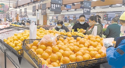 疫情防控期間,保定市各大超市重要民生商品供應(yīng)充足、品類齊全、價(jià)格穩(wěn)定。圖為市民正在選購(gòu)水果。 記者王田明攝
