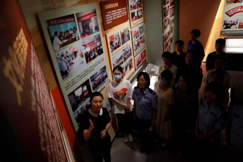圖七 實踐團(tuán)在西高社區(qū)黨史館聽講解員張琪講述“家教、家風(fēng)、家訓(xùn)”故事