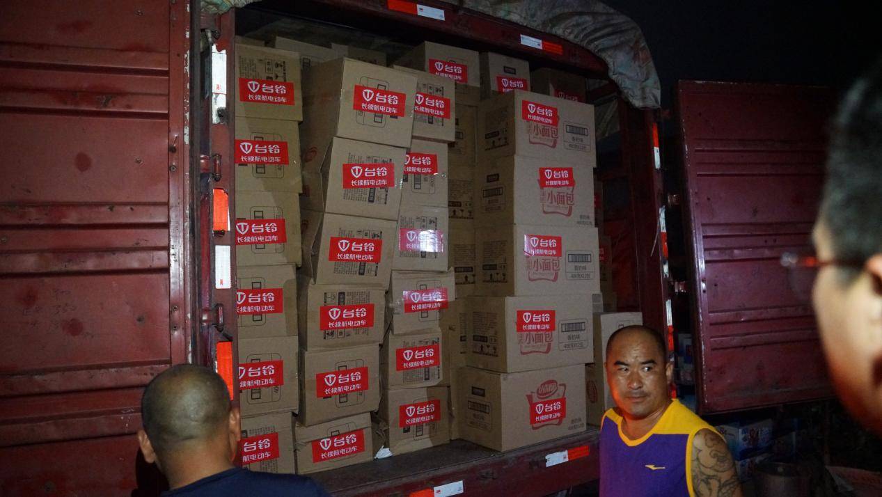 抵達(dá)后,臺鈴工作人員也不顧勞累,挑燈夜戰(zhàn),直至把救援物資分發(fā)到受災(zāi)群眾的手里。由于村莊沒有電,在搬卸物資時,馳援人員們更是直接以打開手機(jī)閃光燈的方式,輔助完成了派送。