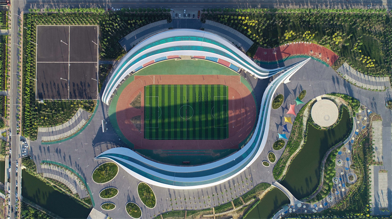 這是5月27日拍攝的河北省黃驊市天健湖共享體育場(chǎng)(無人機(jī)照片)。