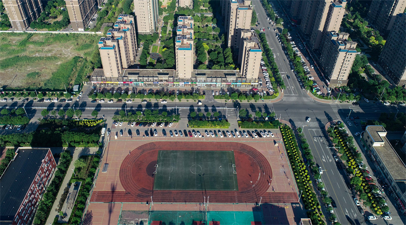 這是5月27日拍攝的河北省黃驊市學(xué)院路共享體育場(chǎng)(無人機(jī)照片)。