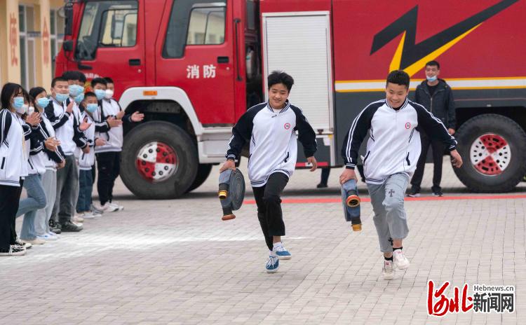 2022年5月10日,在河北省黃驊市李村中學(xué)學(xué)生在進(jìn)行消防技能比賽。通訊員張國(guó)文攝影報(bào)道