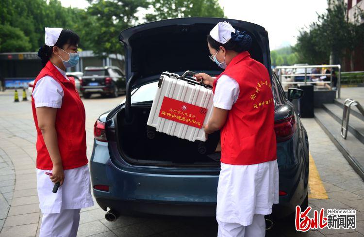 近日,滄州市人民醫(yī)院腫瘤院區(qū)的護(hù)士攜帶患者所需的醫(yī)療用品,準(zhǔn)備上門(mén)護(hù)理服務(wù)。
