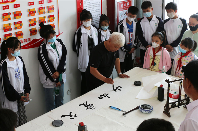 在河北省黃驊市滕莊子鎮(zhèn),書法愛好者在開展書法培訓(xùn)。