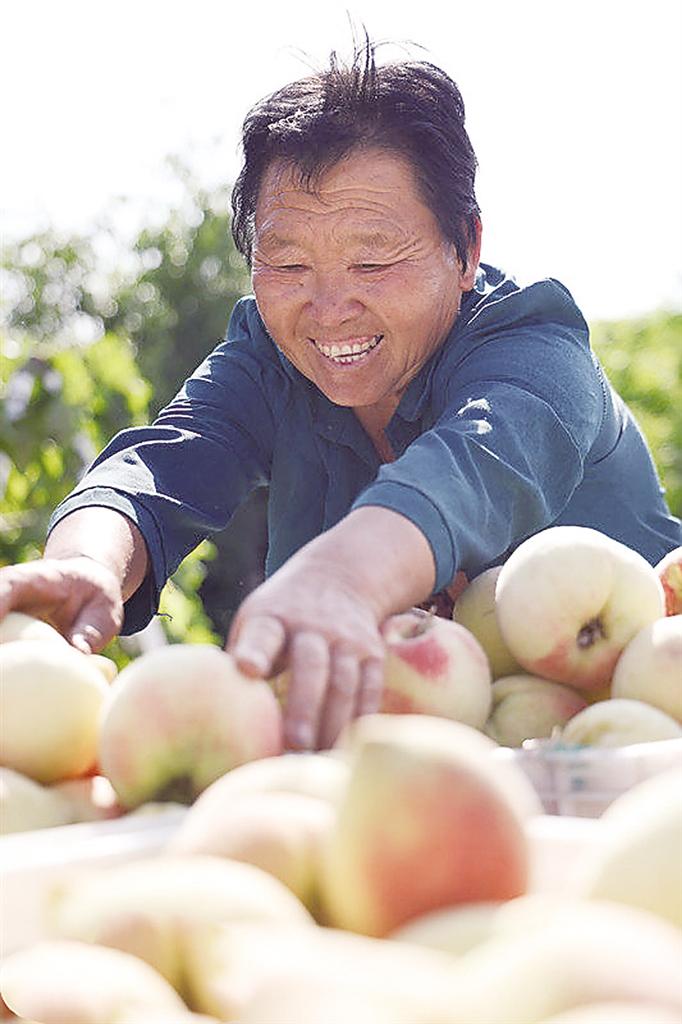 吳橋縣小天罡村的壽桃豐收了。 紀敏攝