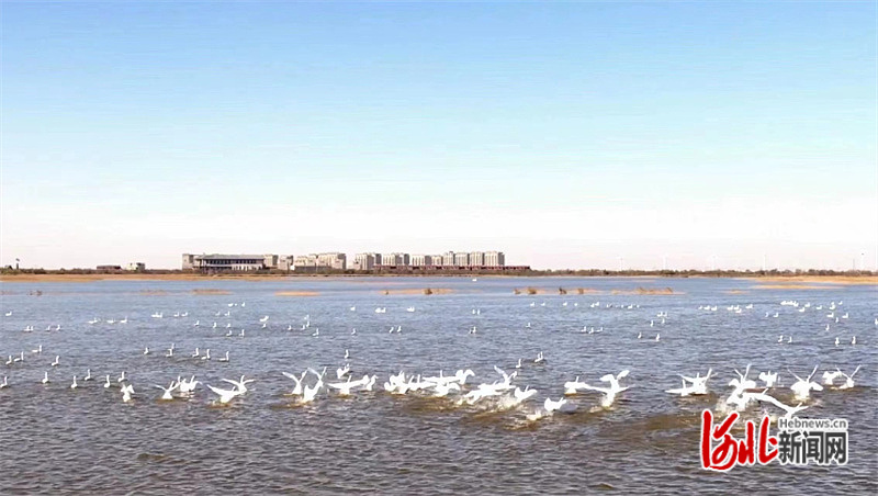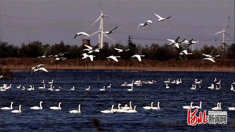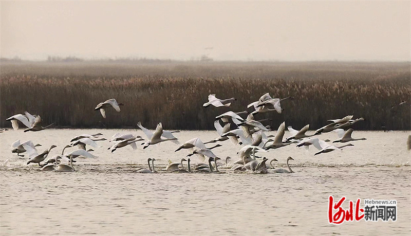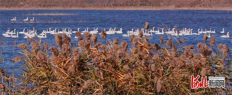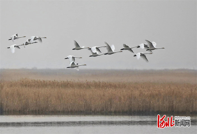 河北滄州南大港濕地迎來遷徙天鵝