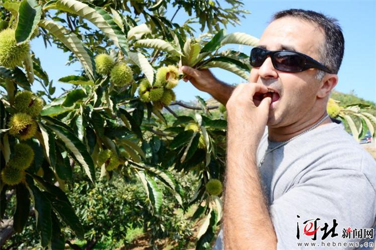 碾子峪鎮(zhèn)艾峪口村已舉辦了多屆板栗采摘節(jié),這是外國游客在采摘板栗。(資料片)通訊員趙生忠攝