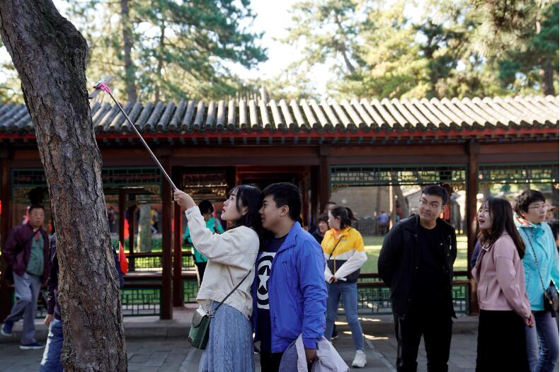 10月5日,游客在承德避暑山莊游覽。