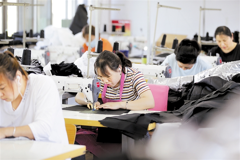 近日,貧困戶在天津幫扶的承德縣云艷制衣廠扶貧車間忙碌。 天津幫扶承德工作隊供圖