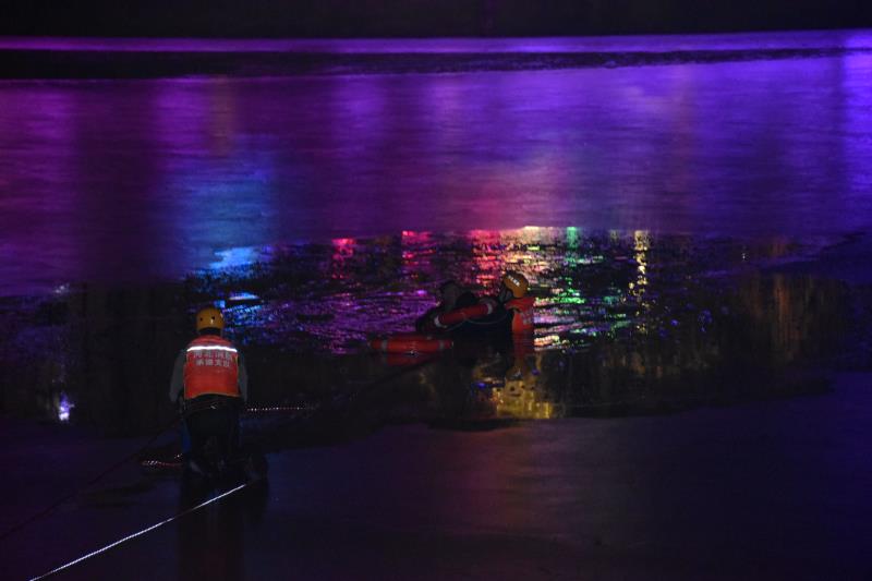 20時40分,第一組救援人員成功到達女子身邊,并利用救生圈將女子向岸邊轉(zhuǎn)移。20時43分,落水女子被營救上岸,并移交給現(xiàn)場120醫(yī)護人員。20時45分,救援人員協(xié)助河道管理處工作人員轉(zhuǎn)移至岸邊。