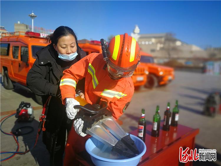 市民正在體驗(yàn)消防設(shè)備。河北日?qǐng)?bào)記者尉遲國(guó)利攝