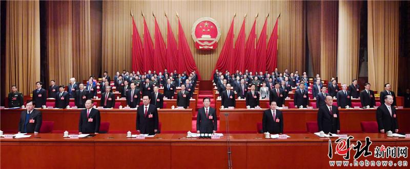 上午9時,王東峰宣布:河北省第十三屆人民代表大會第二次會議開幕。會場全體起立,唱國歌。