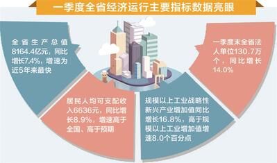 全省生產(chǎn)總值8164.4億元,同比增長7.4%,增速為近5年來最快;居民人均可支配收入6636元,同比增長8.9%,增速高于全國、高于預期;規(guī)模以上工業(yè)戰(zhàn)略性新興產(chǎn)業(yè)增加值同比增長16.8%,高于規(guī)模以上工業(yè)增加值增速8.0個百分點;一季度末全省法人單位130.7萬個,同比增長14.0%……