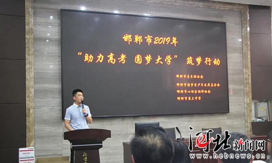 邯鄲市圓夢(mèng)青少年發(fā)展基金會(huì)秘書長(zhǎng)申江濤為學(xué)子加油。