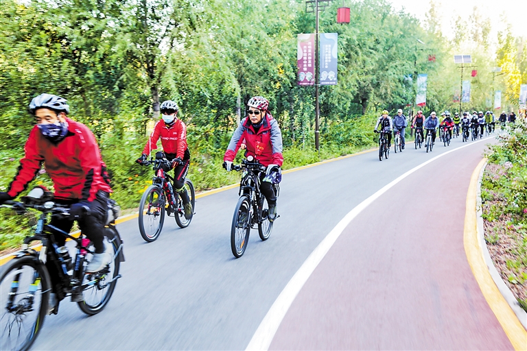 “道路兩側(cè)或綠樹成蔭,或鮮花爭艷,環(huán)境太美了。在這里騎行真是一種享受!62歲的騎友吳先生深有感觸地說,前些年復興區(qū)是“黑色”的,黑煤白灰滿天飛,天空總是灰蒙蒙的,如今樹多了,水清了,空氣清新了,是“綠色”的。