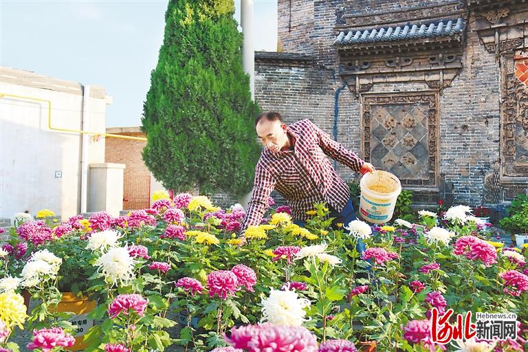 武安市午汲鎮(zhèn)大賀莊村村民在管護街道花卉。 河北日報資料片