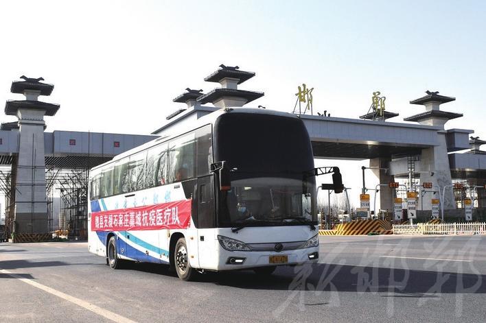 18日上午,邯鄲支援石家莊醫(yī)療隊乘坐大巴車出發(fā)