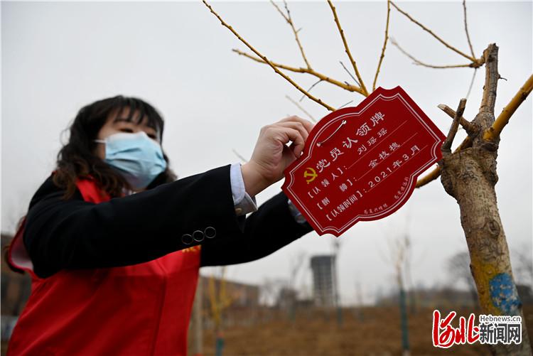 3月1日,邯鄲市復興區(qū)石化街道辦事處舉行“黨建引領(lǐng)添綠意、攜手認養(yǎng)同心林”主題黨日活動暨“黨員認養(yǎng)同心林”綠化項目啟動儀式。圖為黨員代表種植樹木現(xiàn)場。 通訊員何芳攝