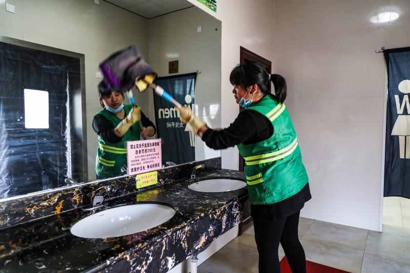 復(fù)興區(qū)彭家寨鄉(xiāng)政府工作人員說:一座公廁有一個(gè)保潔員負(fù)責(zé),連這些墻角窗臺(tái)都一塵不染。 聶長(zhǎng)青、白洪亮攝影報(bào)道