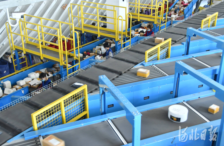2021年4月13日,工作人員在河北省邯鄲市永年工業(yè)園區(qū)的中通快遞轉(zhuǎn)運中心分揀快遞。