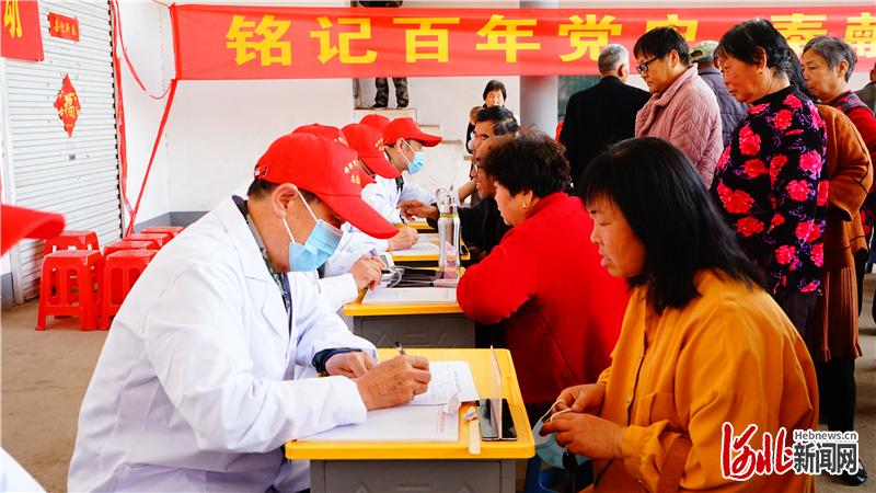 當(dāng)天儀式結(jié)束后,醫(yī)療志愿服務(wù)隊(duì)立即赴直南第一黨支部所在鄉(xiāng)——磁縣時(shí)村營鄉(xiāng)開展義診活動,宣傳傳染病防治、常見病預(yù)防、營養(yǎng)保健等醫(yī)療健康知識,進(jìn)行基礎(chǔ)醫(yī)療檢查,解答群眾疑問。對年齡偏大、行動不便的退役軍人,志愿隊(duì)主動上門義診,詳細(xì)了解老兵身體情況,耐心給予治療提示。