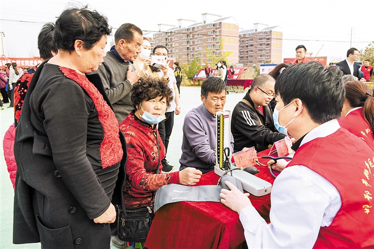 4月16日,肥鄉(xiāng)區(qū)中心醫(yī)院“講黨史、辦實(shí)事、心連心、惠民幫幫團(tuán)”志愿服務(wù)小分隊(duì)在肥鄉(xiāng)鎮(zhèn)北西落堡村廣場(chǎng)給群眾義診。邯鄲市委宣傳部供圖