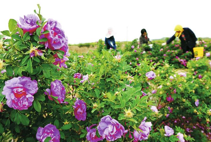 日前,復興區(qū)康莊鄉(xiāng)朝露玫園玫瑰小鎮(zhèn)的玫瑰相繼綻放。這些鮮花可提煉玫瑰精油,也可烘干后制作糕點、香包等,用途廣泛。圖為工人們搶抓花期,加班加點剪摘玫瑰花。 邯報融媒體記者周紹宗攝影報道