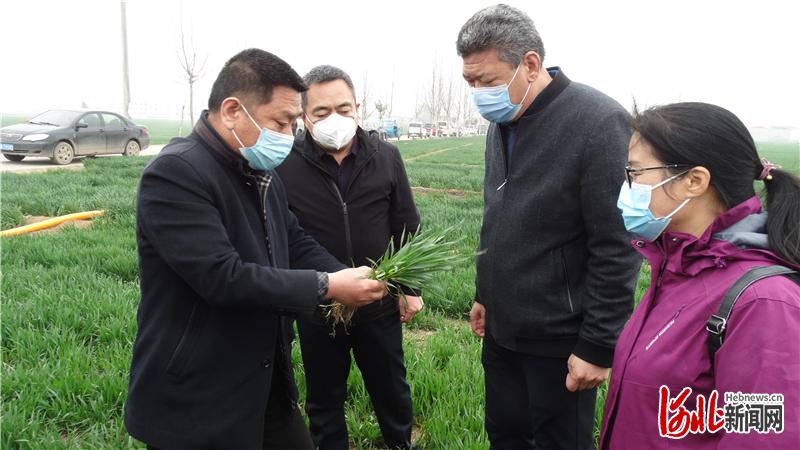 河北日報(bào)訊(記者白增安 通訊員張盼盼)“目前土壤墑情正合適,對播種遲、長勢弱的田塊應(yīng)及早追肥,做好病蟲害防治,促根壯苗!3月25日,大名縣萬堤鎮(zhèn)萬南村的麥田里,縣農(nóng)技推廣站站長王春峰給當(dāng)?shù)胤N糧大戶講解小麥春季肥水管理技術(shù)。