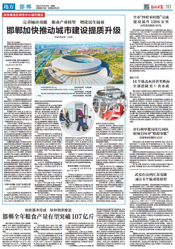 邯鄲是京津冀協(xié)同發(fā)展和中原經(jīng)濟(jì)區(qū)建設(shè)兩大國家戰(zhàn)略確定的“區(qū)域性中心城市”。圍繞貫徹落實黨的二十大精神,加快區(qū)域性中心城市建設(shè),邯鄲深入踐行以人民為中心的發(fā)展思想,圍繞完善城市功能,推動產(chǎn)業(yè)轉(zhuǎn)型,增進(jìn)民生福祉,推動城市建設(shè)提質(zhì)升級。