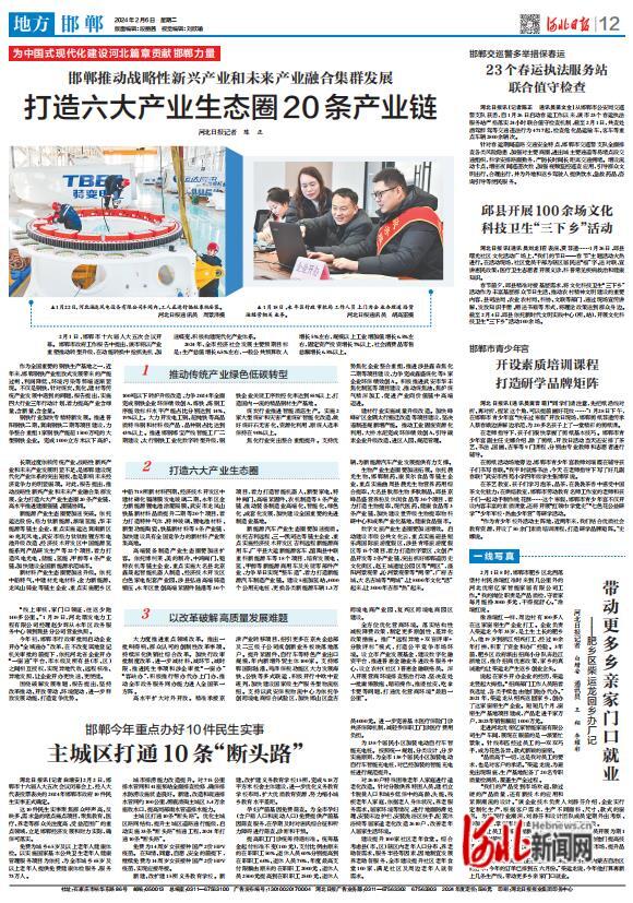 2月1日,邯鄲市十六屆人大五次會議開幕。邯鄲市政府工作報告中提出,該市將以產(chǎn)業(yè)重塑推動轉(zhuǎn)型升級,在動能轉(zhuǎn)換中搶抓先機、加速蝶變,積極構(gòu)建現(xiàn)代化產(chǎn)業(yè)體系。