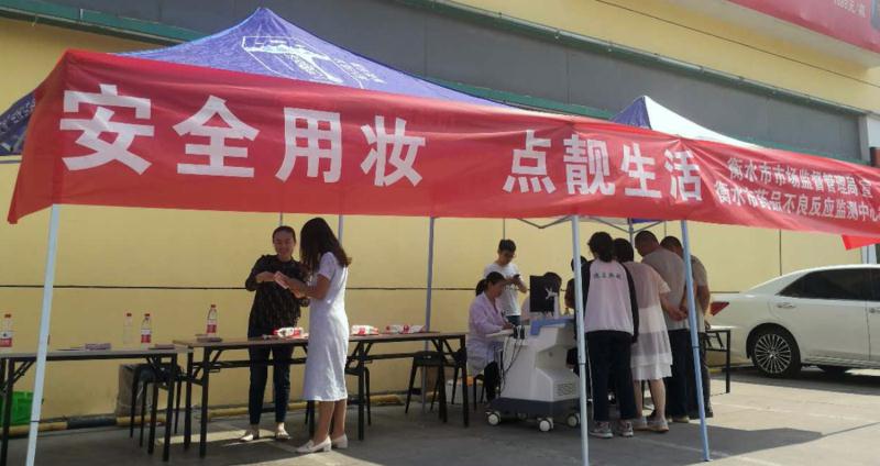 5月25日,衡水市市場監(jiān)管局組織衡水市藥品不良反應(yīng)監(jiān)測中心和桃城區(qū)、工業(yè)新區(qū)、濱湖新區(qū)分局共同舉辦了以“安全用妝,點靚生活”為主題的“5.25愛膚日”集中公益宣傳活動,旨在加強化妝品安全科普宣傳,科普化妝品安全常識及化妝品不良反應(yīng)相關(guān)知識,普及合格化妝品基本要求和選購化妝品注意事項,糾正化妝品使用誤區(qū),提高消費者安全用妝意識,引導(dǎo)消費者科學(xué)合理使用化妝品。