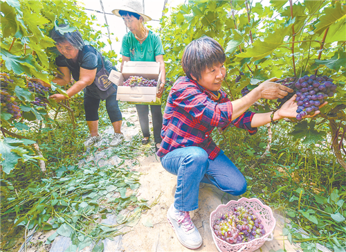 6月19日,在桃城區(qū)鄧莊鎮(zhèn)一家農場,果農忙著采摘葡萄。