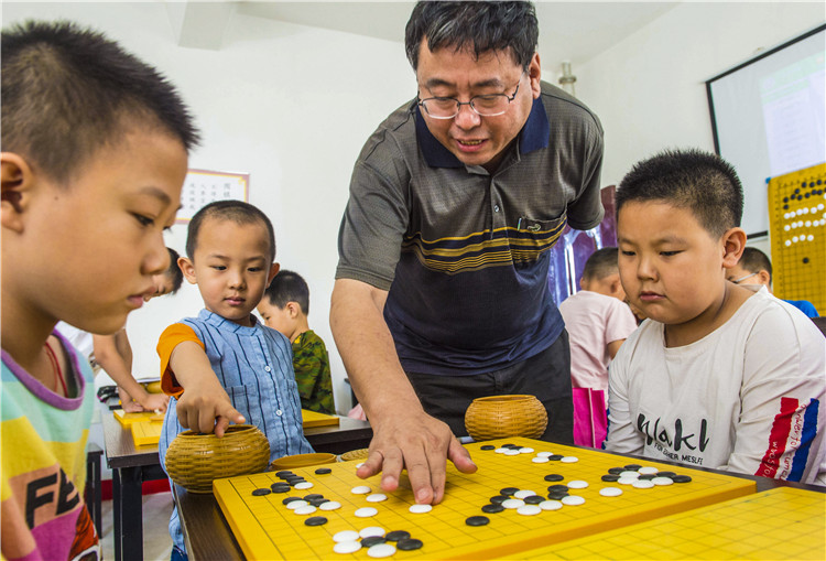 7月11日,小學生在河北省棗強縣青少年活動中心學習圍棋。