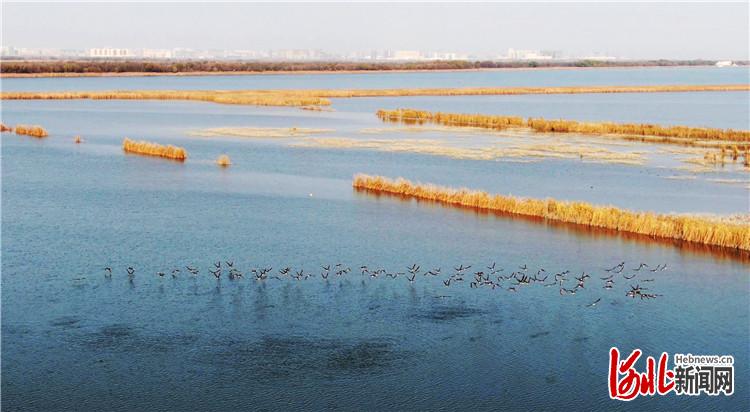 南遷候鳥在衡水湖上空嬉戲飛翔。(資料片)河北日報記者趙海江 趙杰攝
