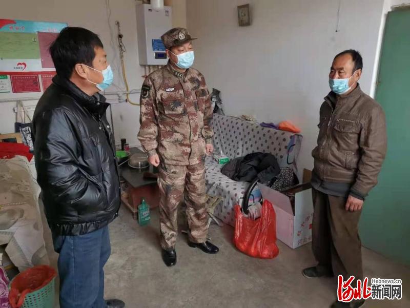 圖為武強(qiáng)縣人武部政委曹永雷(中)到貧困戶(hù)家中慰問(wèn)。夏洪濤攝