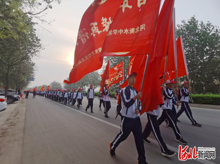 據河北衡水中學黨委書記、校長郗會鎖介紹:“今年是衡水中學建校70周年,更是中國共產黨成立100周年,這條連接著學校與衡水湖的遠足路也因此意義深厚,它不僅承載著衡中建校70年以來初心不改的堅持,更承載著衡中師生對中國共產黨紅色基因的傳承與堅守。青春由磨礪而出彩,人生因奮斗而升華,奮斗不懈、自強不息一直都是青春不變的主題。本次八十華里遠足活動,對于全體高一師生而言,不僅是一次體力上的考驗、精力上的比拼,更是一次思想上的洗禮,精神上的遠征!