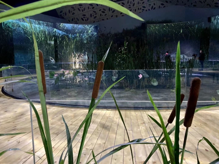 小屋主要分為兩大部分,其中序廳營造的是人類對大自然過度掠奪后受污染的湖底環(huán)境,主廳通過郁郁蔥蔥的蘆葦及栩栩如生的荷花等濕地元素,高度還原衡水湖的生態(tài)環(huán)境,兩者形成鮮明的對比和強烈的視覺沖擊,觸發(fā)游客對美好環(huán)境的向往。在主廳,游客可以踏上緩慢旋轉(zhuǎn)的轉(zhuǎn)臺,環(huán)繞四周大屏,欣賞到不斷閃現(xiàn)的衡水湖自然風光。伴隨著《生態(tài)贊歌》主題曲的歌聲、風聲和鳥鳴聲,游客仿佛置身于衡水湖碧波萬頃的湖水之中。(記者杜俊穎 通訊員李會龍)