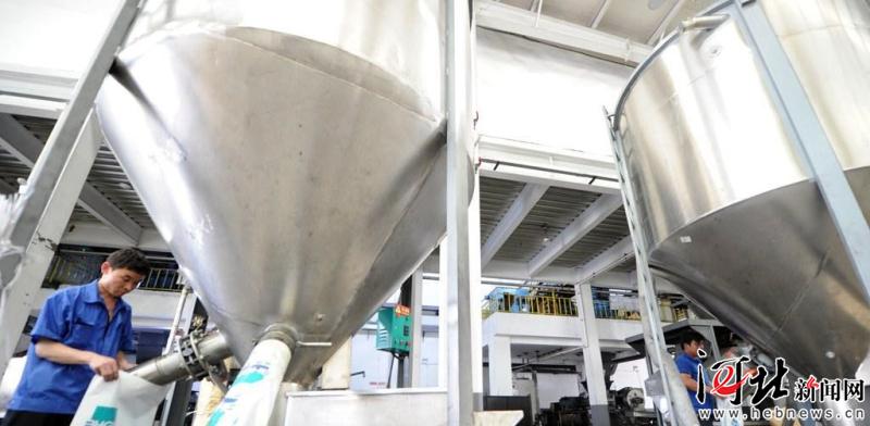 5月23日拍攝的位于文安縣經(jīng)濟(jì)開發(fā)區(qū)的廊坊北化高分子材料有限公司產(chǎn)品生產(chǎn)線。