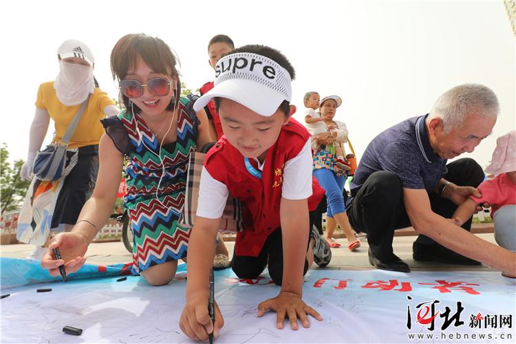 6月2日,第三屆“大美廊坊· 最美藍(lán)天衛(wèi)士”頒獎(jiǎng)儀式舉行。圖為小記者和市民現(xiàn)場簽名。