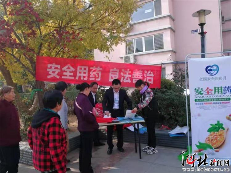 11月4日,廊坊開發(fā)區(qū)市場(chǎng)監(jiān)督管理局在宏泰美樹小區(qū)和幗華邨小區(qū)開展“全國(guó)安全用藥月”科普宣傳活動(dòng),圖為活動(dòng)現(xiàn)場(chǎng)。