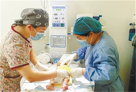 圖為醫(yī)務(wù)人員為新生兒進(jìn)行日常護(hù)理。 記者吳瓊攝